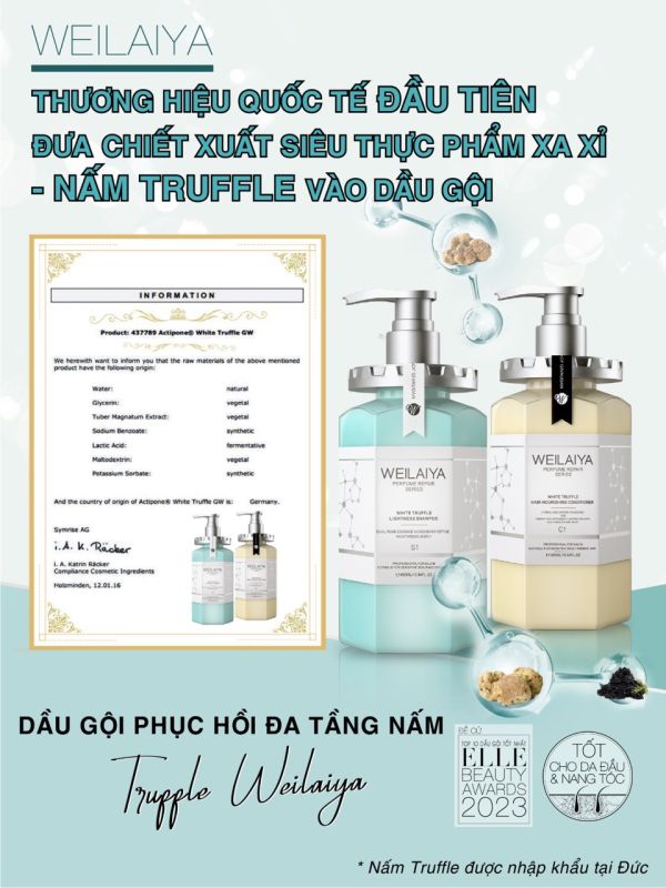 Dầu gội phục hồi đa tầng nấm Truffle Weilaiya - Thành phần cao cấp & đắt đỏ bậc nhất