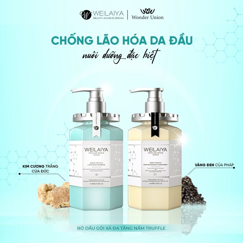 Dầu gội phục hồi đa tầng nấm Truffle Weilaiya - Tận hưởng sự chăm sóc tóc chuyên nghiệp cấp độ Salon. Đáp ứng tất cả những nguyện vọng của bạn về một loại dầu gội đầu hoàn hảo - Chăm sóc toàn diện, giúp da đầu trở lại trạng thái khỏe khoắn và trẻ trung.