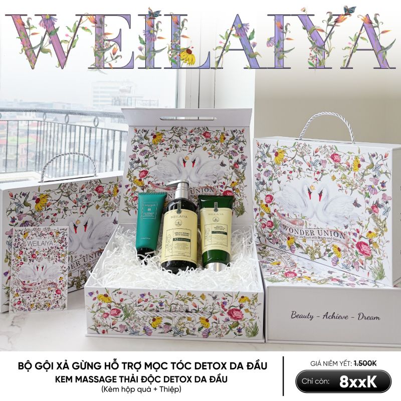 Hộp quà Thiên Nga gồm Cặp Gội Xả Gừng Luxury và Detox Da Đầu Khô Weilaiya