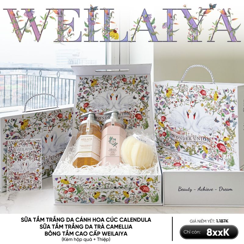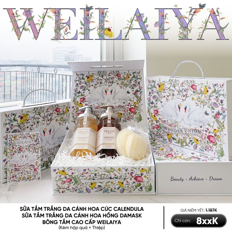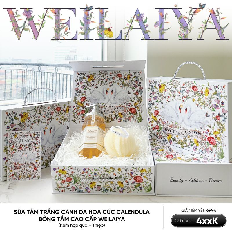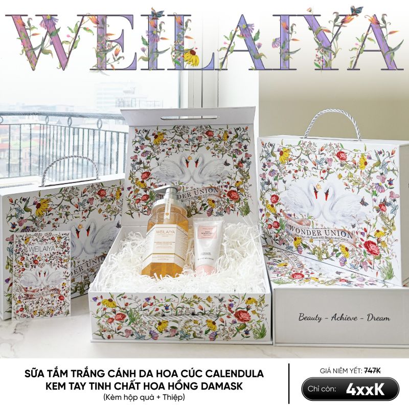 Hộp quà Thiên Nga gồm Sữa tắm Hoa Cúc và Kem Tay Weilaiya