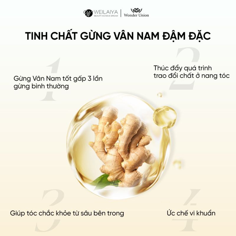 - Ngoài ra dầu gội xả gừng Weilaiya có khả năng hỗ trợ tóc mọc mới, giúp tóc đen nhánh, bóng mượt.