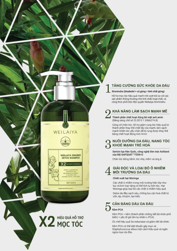 - Hồi sinh da đầu với dầu gội gừng Vân Nam Weilaiya với việc cung cấp liên tục các chất dinh dưỡng cho lõi tóc, chất lượng tóc mạnh mẽ.