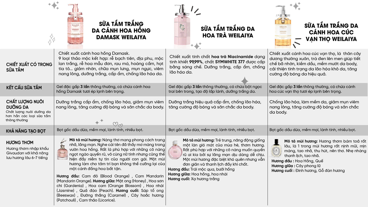 ĐIỂM NỔI BẬT CỦA SỮA TẮM WEILAIYA HOA CÚC